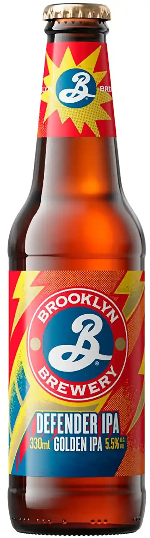 La bière Defender IPA de la brasserie Brooklyn, une IPA américaine intense et fruitée avec des notes de pamplemousse...